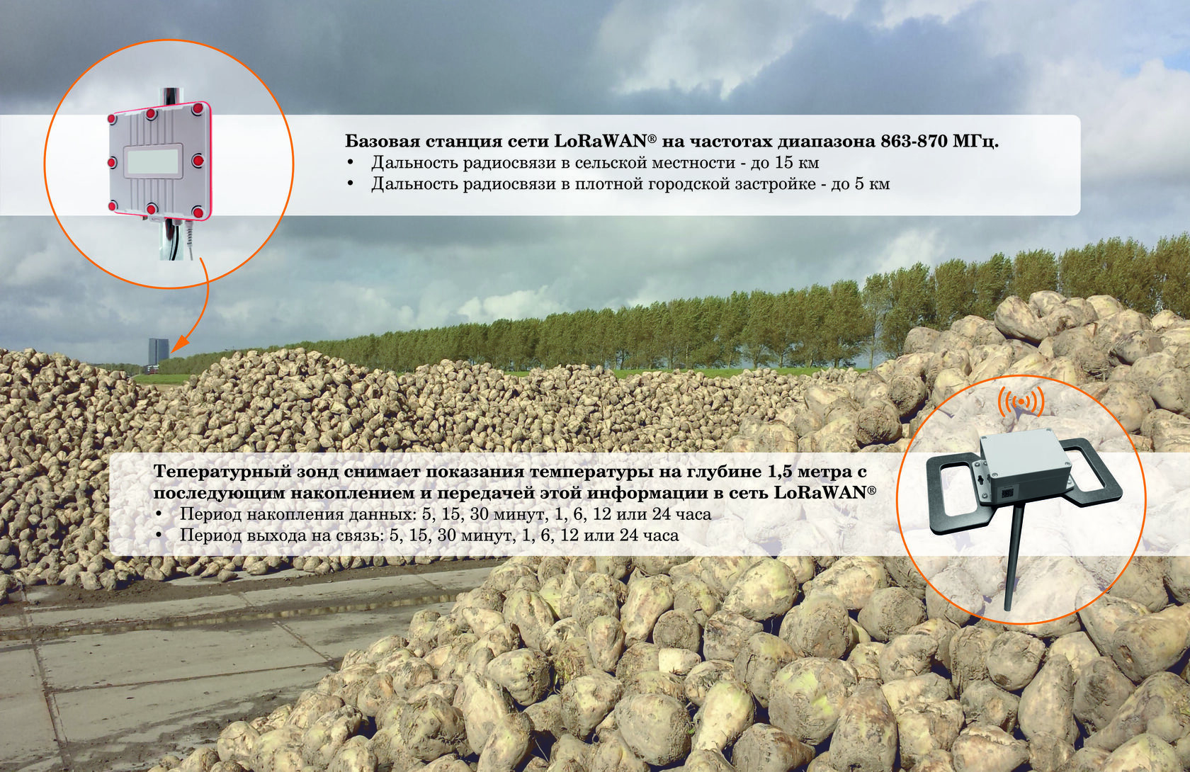 Зонд может использоваться в сельскохозяйственной отрасли, например, для контроля температуры в зерновых и овощных хранилищах, кагатах. Использование зондов позволяет вовремя заметить повышение температуры внутри контролируемого продукта и избежать потери урожая.